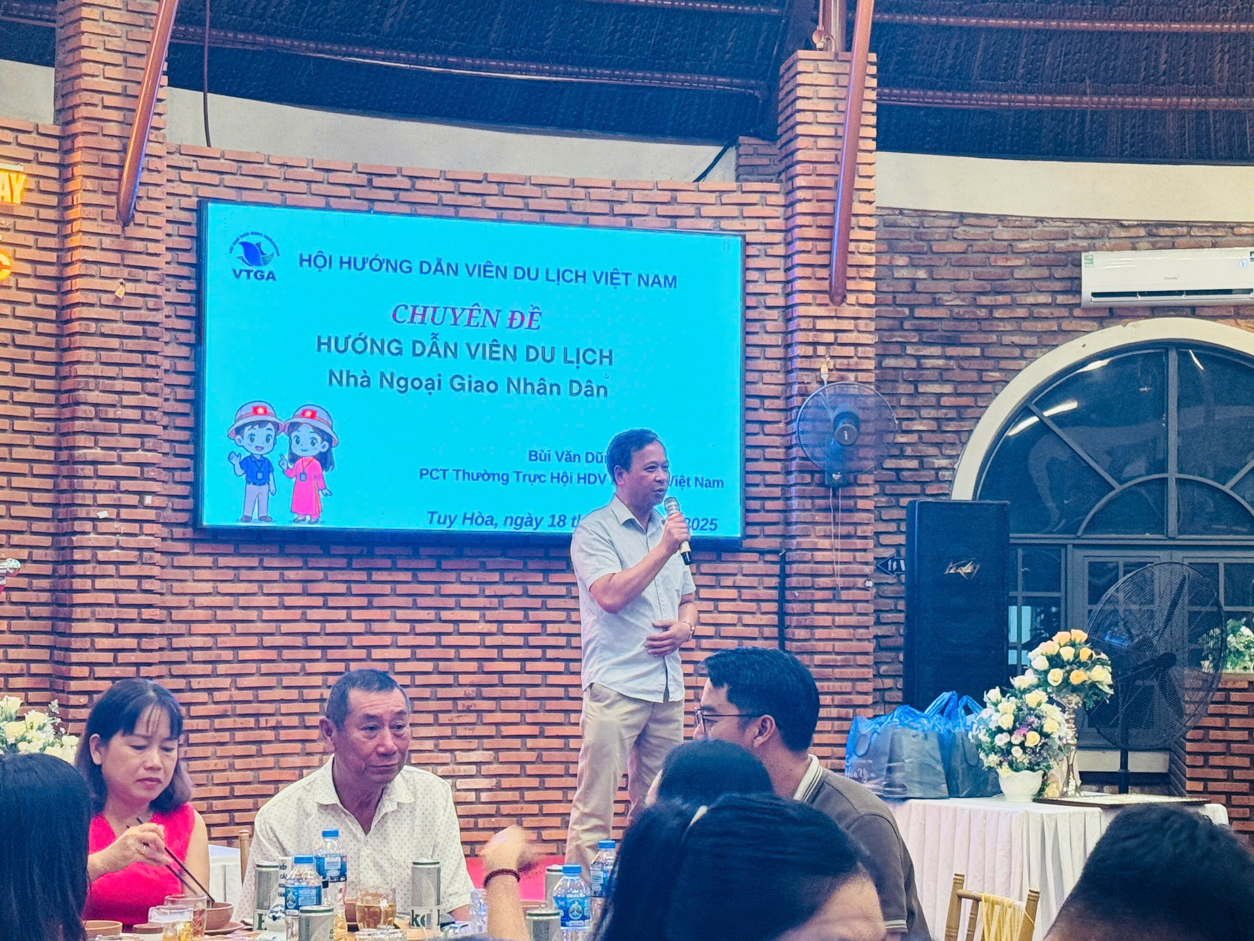 Trong không khí cởi mở và gắn kết tại Sông Ba Farmstay, các hướng dẫn viên đã có cơ hội trao đổi kinh nghiệm thực tế, chia sẻ những tình huống nghề nghiệp đặc thù và cùng nhau tìm giải pháp nâng cao hình ảnh người làm du lịch Việt Nam – thân thiện, hiểu biết và chuyên nghiệp. Thông qua chương trình, thông điệp “Hướng dẫn viên du lịch – Nhà ngoại giao nhân dân” tiếp tục được lan tỏa mạnh mẽ trong cộng đồng làm du lịch.