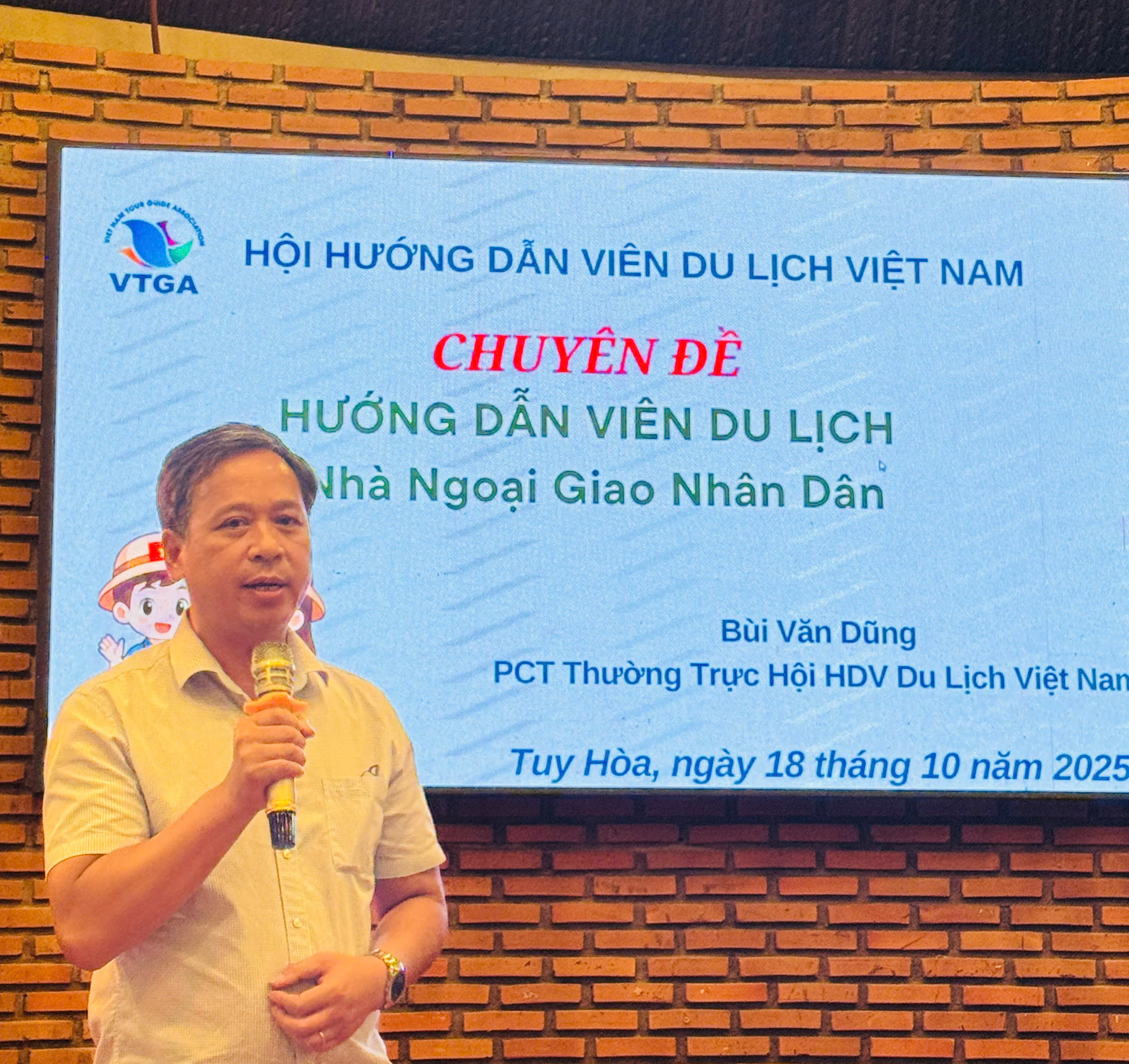 Trong khuôn khổ chuyến khảo sát thực tế và cập nhật kiến thức tuyến, điểm, Ngày 18 tháng 10 năm 2025, tại Sông Ba Farmstay (phường Tuy Hoà, tỉnh Đắk Lắk), Chi hội HDV du lịch Khánh Hoà đã phối hợp với Hội Hướng dẫn viên Du lịch Việt Nam tổ chức buổi tập huấn chuyên đề “Hướng dẫn viên du lịch – Nhà n....